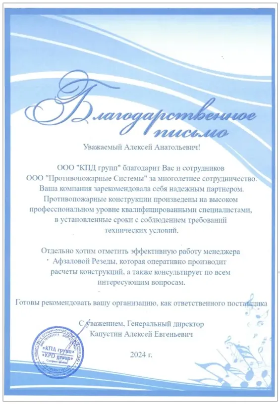 Благодарственные письма